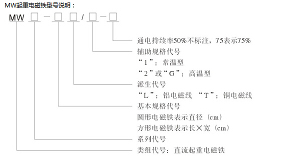 3、 水中吸吊物(wu)料時,請選用潛水(shui)型(潛水深度不大(da)于100m)。潛水型電磁鐵(tie)參數與常溫型參(can)數相同。如用戶需(xū)要潛水型,請在✌️訂(dìng)貨時說明。